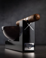 A bespoke cigar ash vessel handcrafted of pure Obsidian at a boutique factory in Europe.